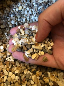 I wasn’t sure what to fill the doorstop with though, as I didn’t want to add to the plastic hell we’re living in now, and organic things like rice/wheat can be problematic if it ever gets damp etc. So I bounced ideas off my husband and we quickly decided to go to B&Q (large UK hardware store for those overseas readers) and see if we could find any nice decorative gravel or chippings. We found some lovely fine, but weighty, gravel which was perfect. And cheap! It’s called Alpine Gold I think.