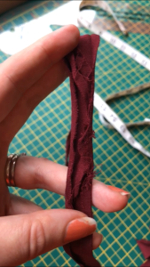 If you were working with cotton, then it irons immediately and you’re guaranteed for that crease to stay. With crepe … not so much… You have to find a sweet spot with your iron between having it hot enough to make it even crease at all, but not SO hot that the fabric shrivels up and melts! If you don’t get that fold, then it all just pops out the other end and lies flat again! I had a piece of the fabric to test the iron on each time, to check I wasn’t going to melt the main garment!