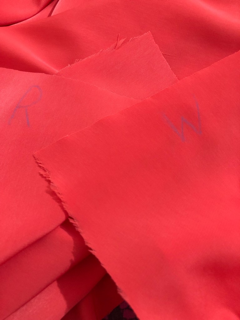 Skirt panels went together beautifully with french seams, which I should be quite au fait with now, but I still naturally forget to sew wrong sides together first. It’s so ingrained to do the opposite. I have some little fabric clips which helped me hold a bunch of pieces together quickly to check it all lined up nicely. I also wrote on the lining fabric with chalk which was the right and wrong side, because in certain evening light, was often hard to tell: