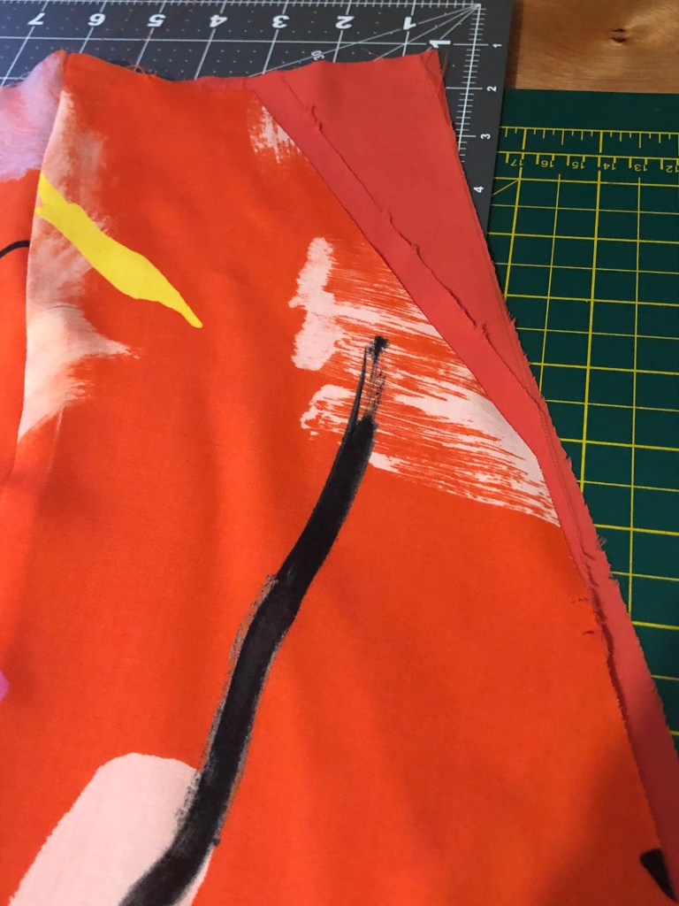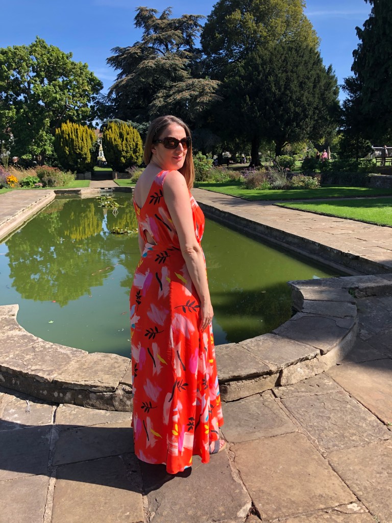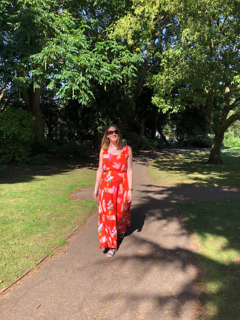 So I had bought some stunning orange fabric from Like Sew Amazing called Auralia Art Rayon. I knew I wanted to make a maxi dress and had a few patterns in mind. When I got the fabric home and had a closer look, I realised it’s quite sheer, so Sarah was able to point me in the direction of some beautifully matching Tangerine Peachskin to act as lining.
