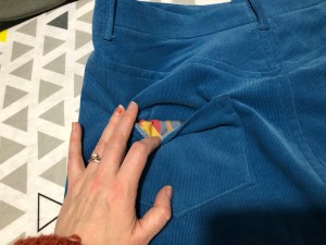 I suspect that because the corduroy was kinda soft, that some bit of it might have stretched a bit. Again, this came back to the sizing I mentioned earlier.