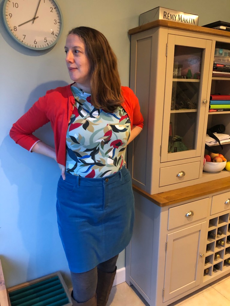 c) I didn’t want the skirt to dictate what it was going to be paired with. I need a few plain block coloured things in my wardrobe, as all these prints can mean you can’t mix and match very well at the end of the day. I like things to be versatile so that you don’t make for the sake of making.